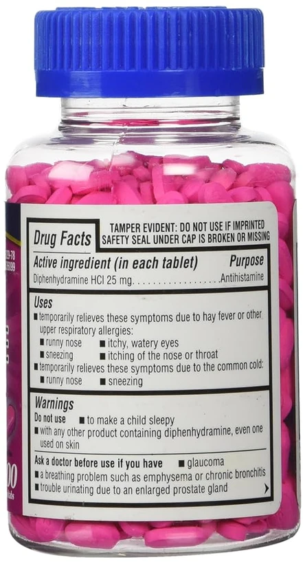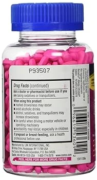 Diphenhydramine HCl 25 mg – Kirkland Signature یک آنتیهیستامین نسل اول با اثرگذاری سریع است که برای تسکین علائم آلرژی، سرماخوردگی و واکنشهای حساسیتی و همچنین بهعنوان کمکخواب کوتاهمدت مورد استفاده قرار میگیرد.