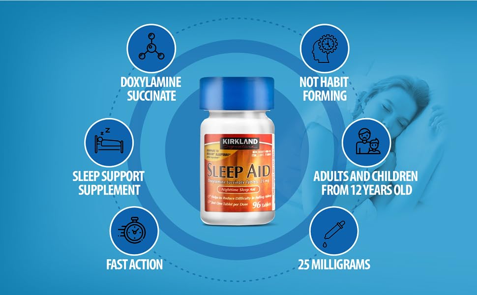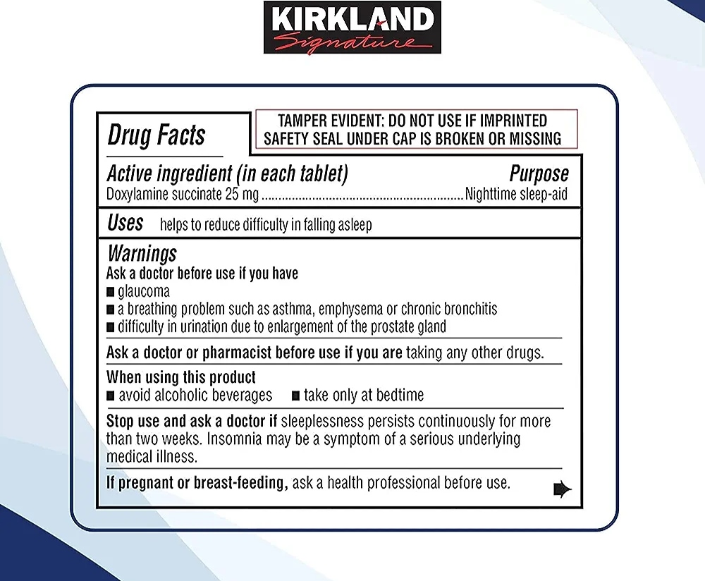 مکمل خواب sleep aid برند کرکلند 96 عددی و 192 عددی Signature Sleep Aid Doxylamine Succinate (25 میلی گرم)
