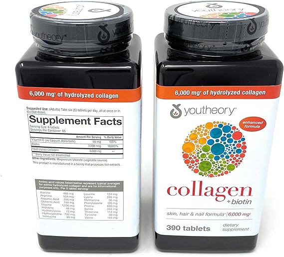 کلاژن بیوتین 6000 میلیگرم یوتئوری (Youtheory Collagen Biotin) یک مکمل حرفهای برای تقویت پوست، مو و ناخنها است که با ترکیب دوز بالای کلاژن هیدرولیز شده (6000 mg) و بیوتین به حفظ جوانی پوست، افزایش استحکام ناخنها و کاهش ریزش مو کمک میکند.